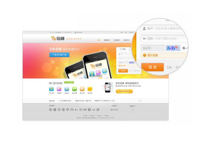 倍棒就一个类似于支付宝、财付通等在线支付的平台,目前支持手机充值、交通罚款、机票预订、缴水电费、转账付款五项支付应用,帮助客户解决足不出户就可以轻松稿定您要办的事。
